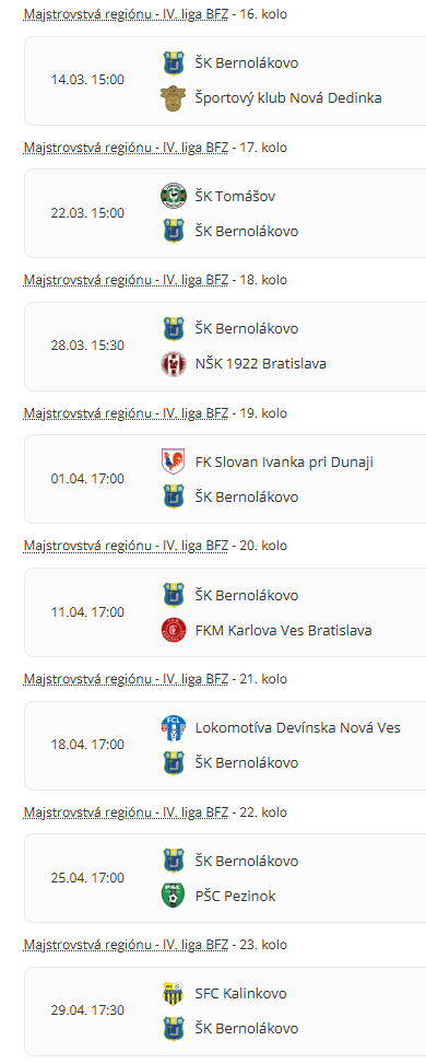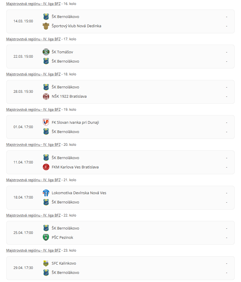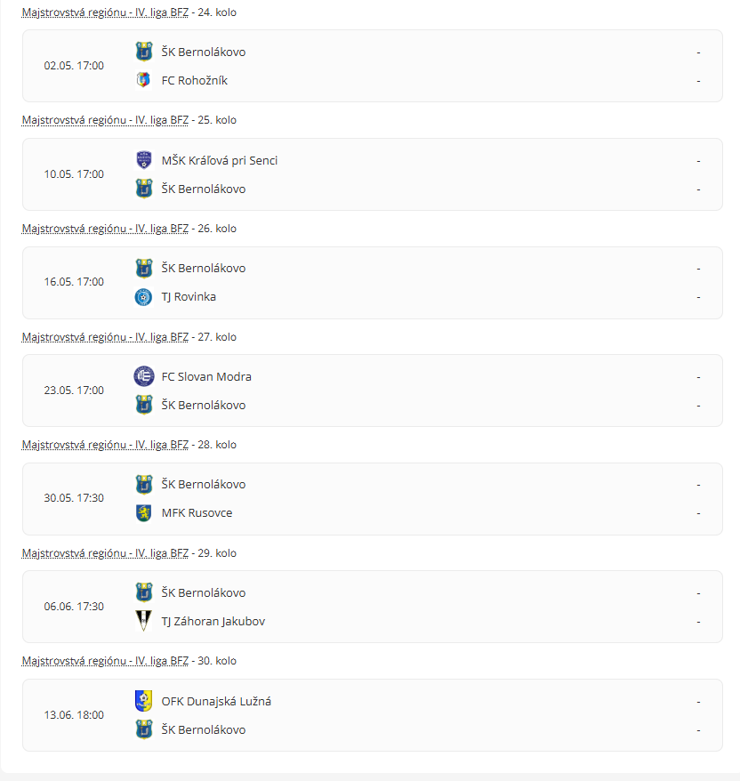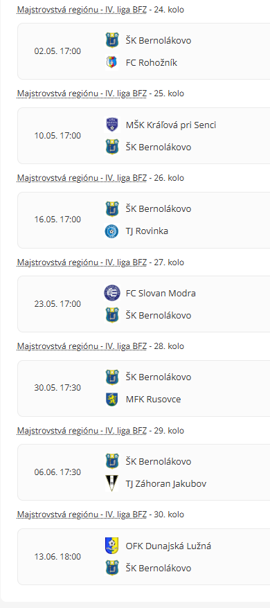 PREHĽAD ZÁPASOV ŠK Bernolákovo 2025 – 2026